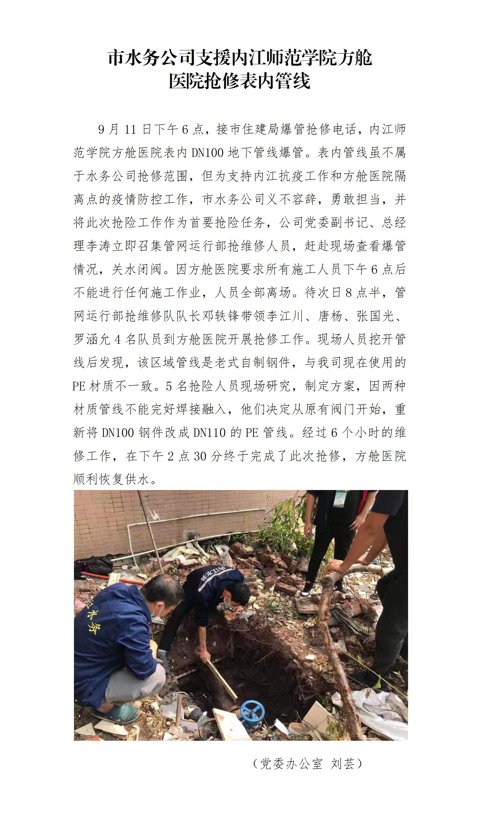 市水務(wù)公司支援內(nèi)江師范學(xué)院方艙 醫(yī)院搶修表內(nèi)管線