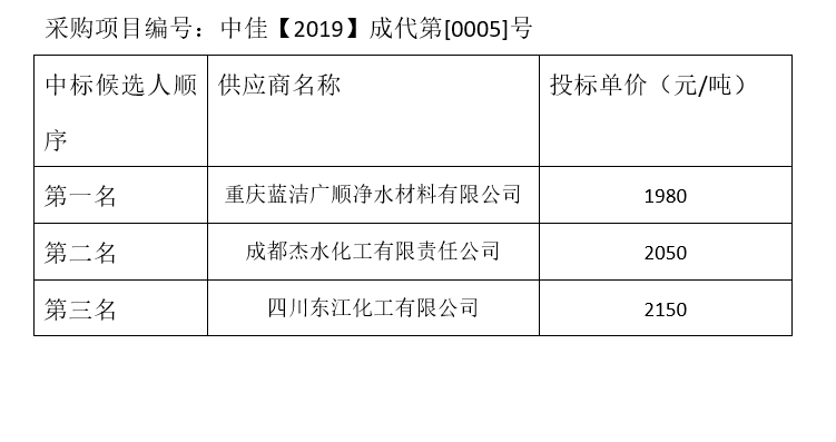 內(nèi)江市污水處理有限責(zé)任公司碳源補充劑和輔助消毒劑招標(biāo)項目(第1包)評標(biāo)結(jié)果公示