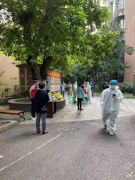支部宣傳委員倪勇帶頭,與第六黨支部黨員余川、楊華文,水務(wù)公司退休黨員何蜀治、王萍在天河街小區(qū)組建成臨時黨支部,全力以赴投入到小區(qū)抗疫一線工作中,協(xié)助社區(qū)工作人員填寫和分發(fā)通行證,在核酸檢測點維持秩序。黨員熊瑞楷積極加入盧浮春天小區(qū)業(yè)主委員會,參與送黃碼人員到就近醫(yī)院做核酸檢測、分發(fā)通行證、維持核酸檢測現(xiàn)場排隊秩序、護(hù)送出門看病或開生活超市的特殊人群外出等工作;黨員楊艷、王曉東、廖玲三名同志分別在靈秀清風(fēng)苑、恒祥嘉苑、歐城印象小區(qū)擔(dān)任十戶長,協(xié)助小區(qū)物業(yè)上門通知每戶居民做核酸。