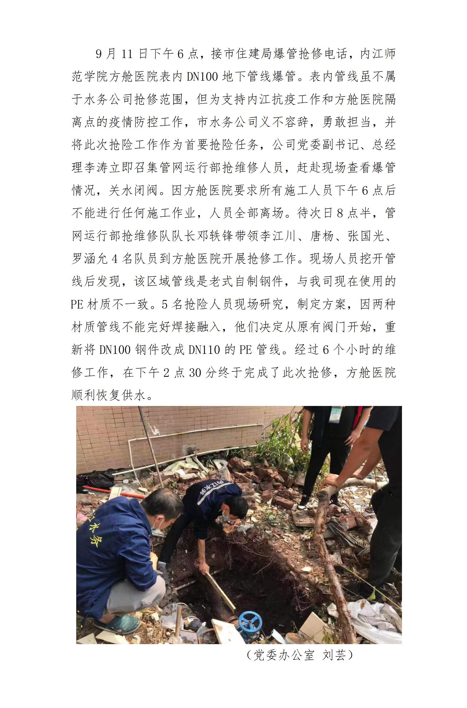 市水務公司支援內江師范學院方艙 醫(yī)院搶修表內管線