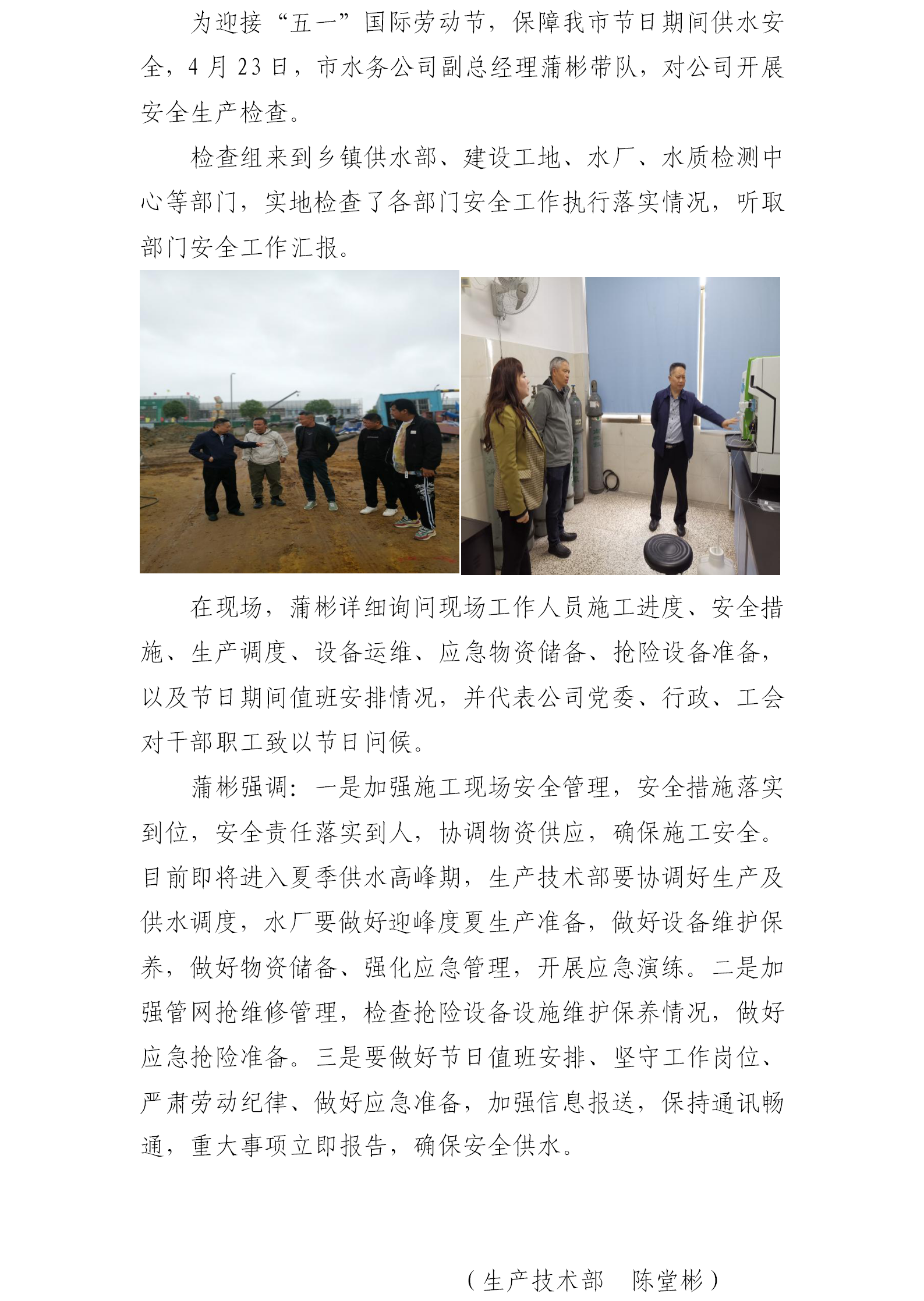 公司開展“五一”節(jié)前安全生產(chǎn)檢查