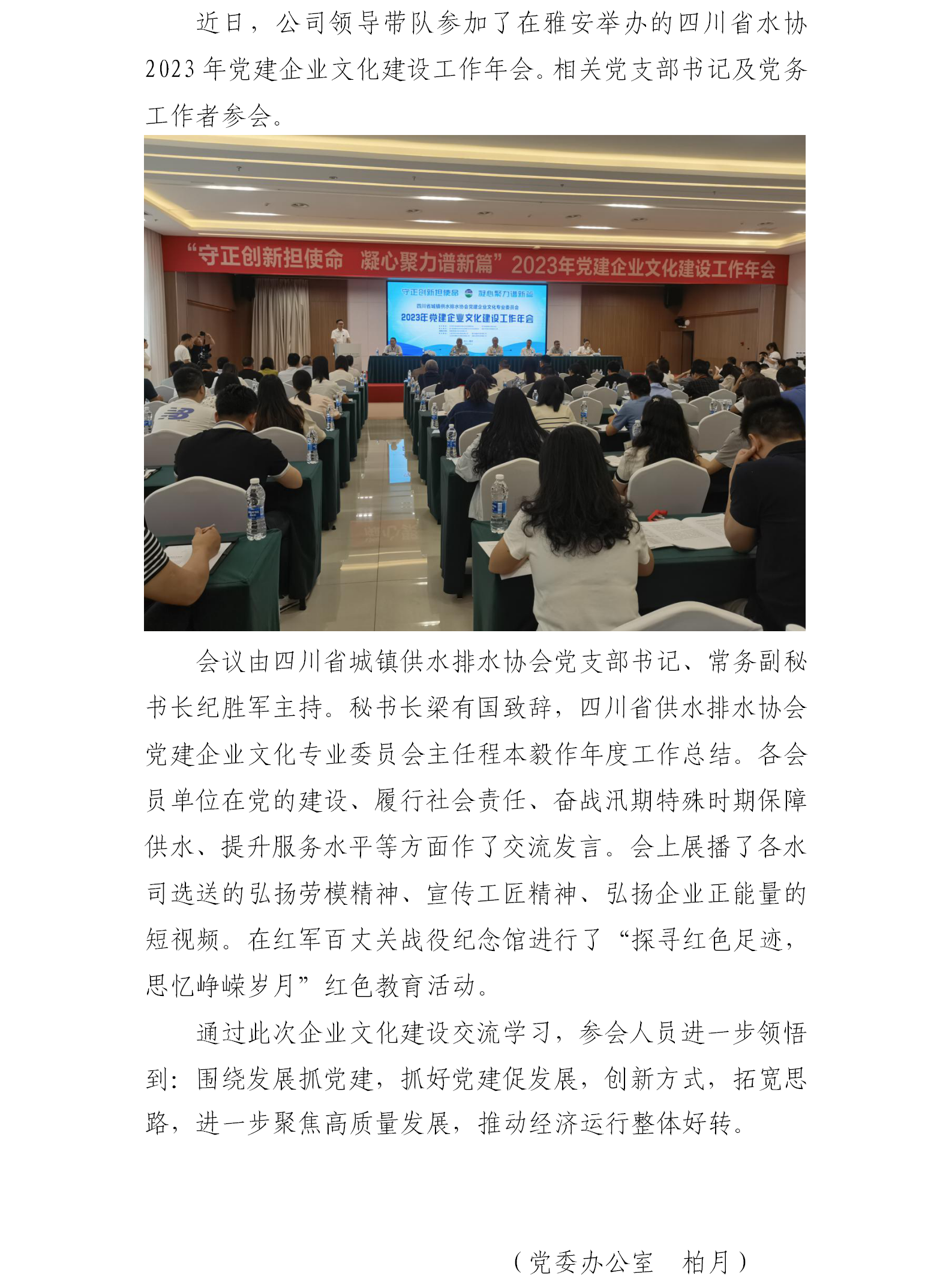 公司派代表參加四川省水協(xié)2023年黨建企業(yè)文化建設(shè)工作年會