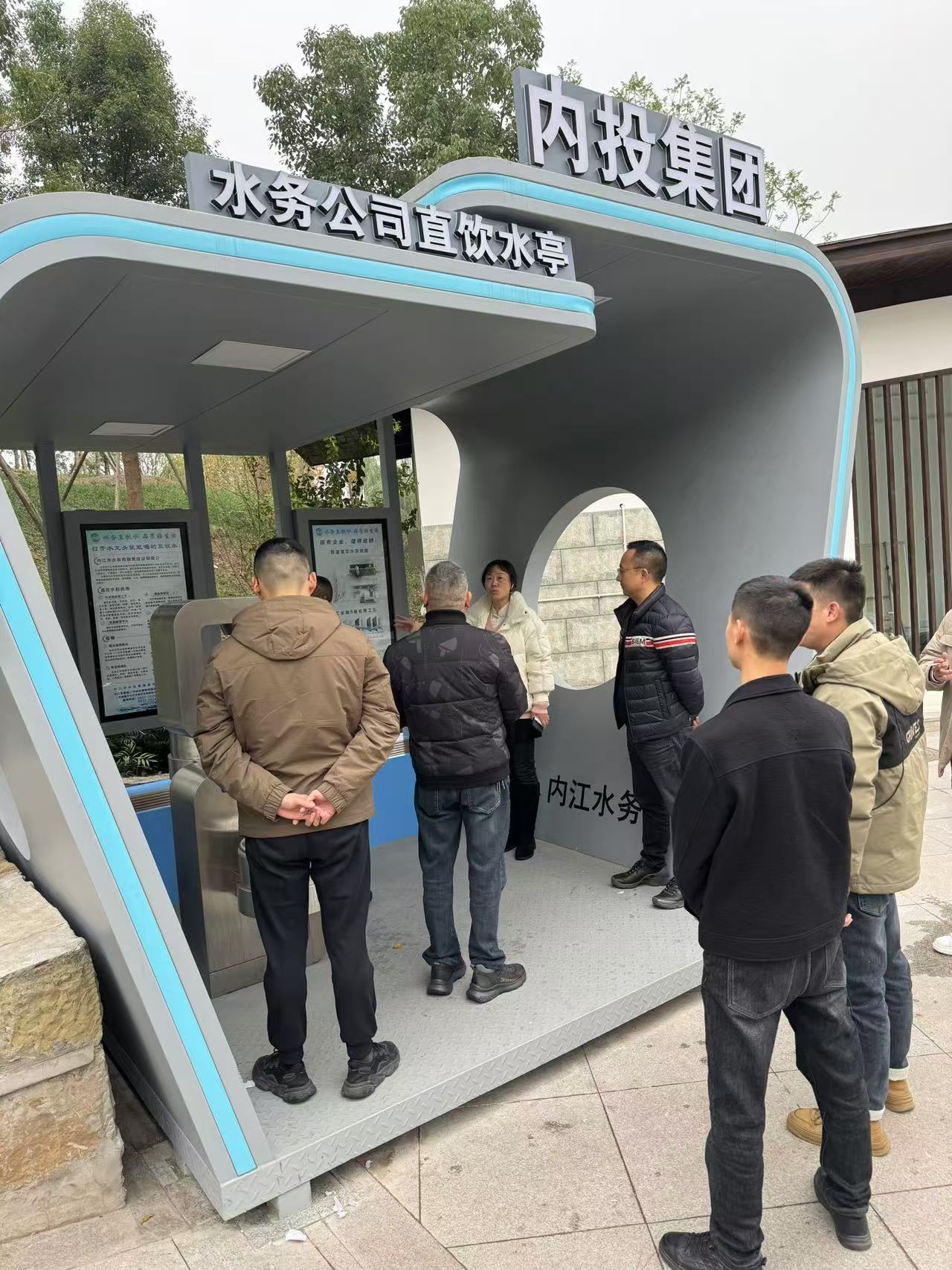 代表團實地考察了五星濕地公園直飲水亭、水木青華小區(qū)直飲水設施及內(nèi)江六中直飲水泵房等示范區(qū)域,詳細了解內(nèi)江市直飲水項目實施細節(jié)與技術方案。通過現(xiàn)場觀摩,南江縣代表對直飲水設備性能、運營管理模式及市場前景有了直觀認識,并高度評價內(nèi)江的成功實踐。