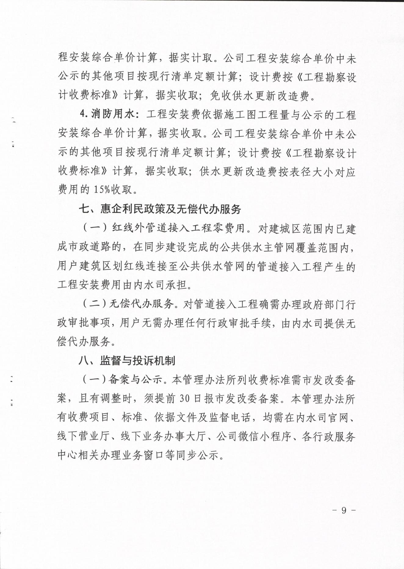 內(nèi)江市水務有限責任公司供水工程安裝及供水管道更新改造收費管理辦法(試行)